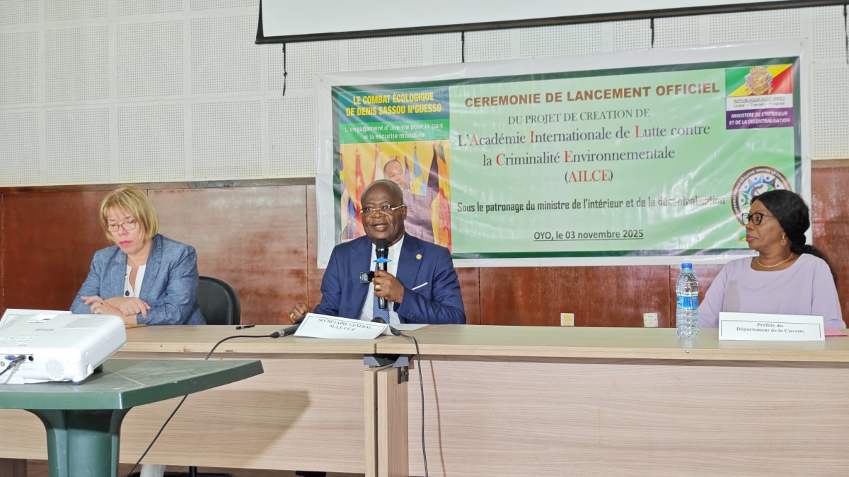Avant de regagner Brazzaville, le Corps diplomatique a participé, le 03 novembre 2025, à l’hôpital Général Edith Lucie BONGO ONDIMBA d’Oyo, à la cérémonie d’ouverture du Séminaire de lancement des travaux de conception et de construction de l’Académie Internationale de Lutte contre la Criminalité Environnementale. Ce projet bâti sous la forme d’une École Nationale à Vocation Régionale (ENVR), sera mené par le ministère de l’Intérieur et de la Décentralisation autour duquel se retrouveront plusieurs autres ministères techniques et institutions concernées par la problématique de la lutte contre la criminalité environnementale.